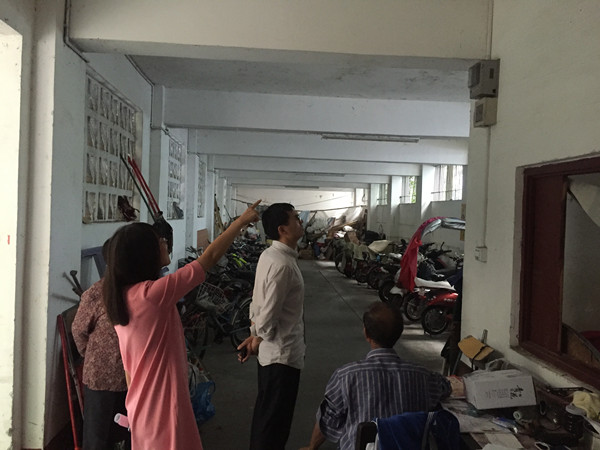 图为检查南园自行车棚