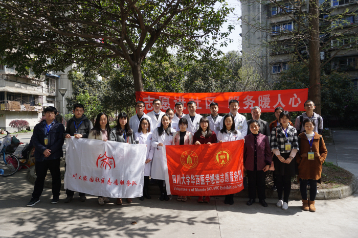 2017年3月26日上午9点,四川大学社区建设办公室组织川大家园社区志愿服务队,联合四川大学华西医学懋德志愿服务队、四川大学华西临床医学院“博士快车”实践服务团以及四川大学华西临床医学院研究生会在新北村小区开展 “健康进社区”系列志愿服务活动。