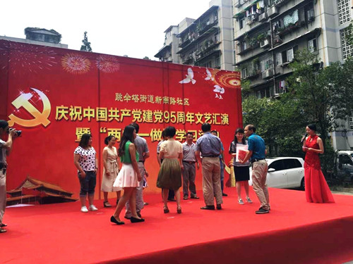 6月29日14:00,由跳伞塔街道新南路社区党委举办的庆祝中国共产党建党95周年文艺汇演暨“两学一做”学习活动在大学路12号小区拉开帷幕。武侯区政协副主席芶绍全、跳伞塔街道工作委员会书记罗新蓉出席了活动。