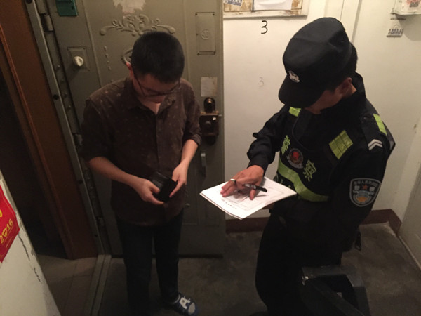图为派出所民警对长租居民进行信息登记和采集