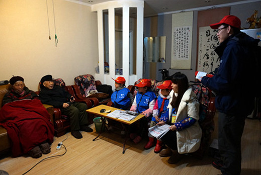 下午三点,川大家园社区志愿服务队的队员在南虹村社区工作人员的安排下,来到华西南苑小区清扫了小区院落。随后,队员们经过南虹村社区刘强老师的培训后,带领社区的7名“ 小小志愿者”来到林荫街9号居民院落中的6户老人家,为老人们送去准备好的礼物、报纸并为老人朗读新闻,表演节目,使他们快快乐乐、热热闹闹的度过元宵佳节。