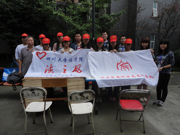 2014年9月27日下午两点,四川大学社区建设办公室为扩大志愿服务对象范围,加强志愿活动内容多样化,组织川大家园社区志愿服务队联合法学院下属 “法之风”青年志愿服务队,在农林村小区开展了免费法律咨询活动,旨在为社区居民遇到的法律问题提供帮助。