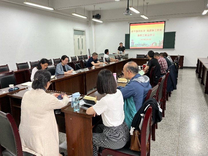 5月13日下午,老干部党总支、离退休工作处在文华活动中心309会议室组织开展了第7期教职工政治学习。会议由老干部党总支副书记兼离退休工作处副处长罗梅主持,全体教职工参加了学习。