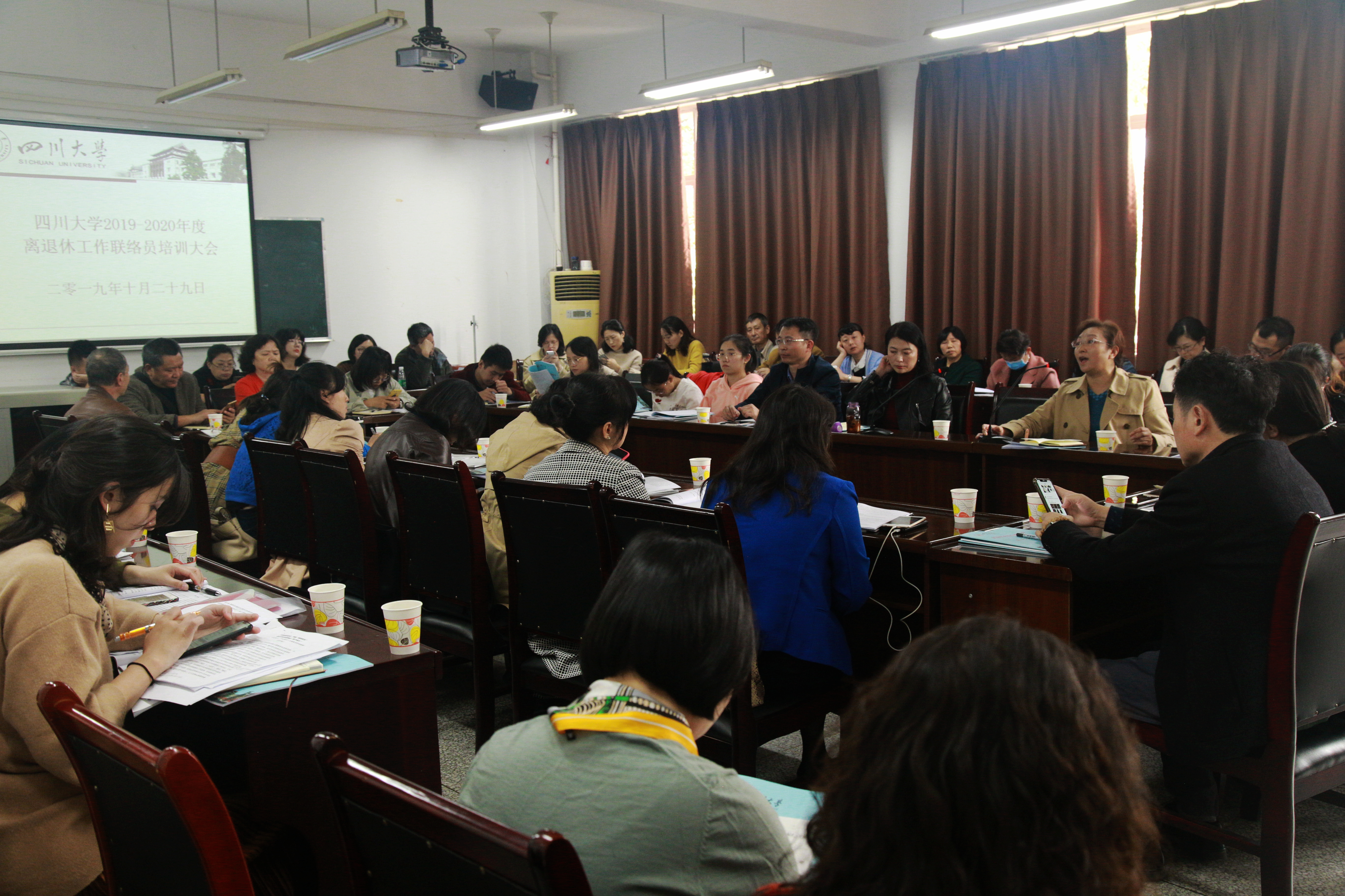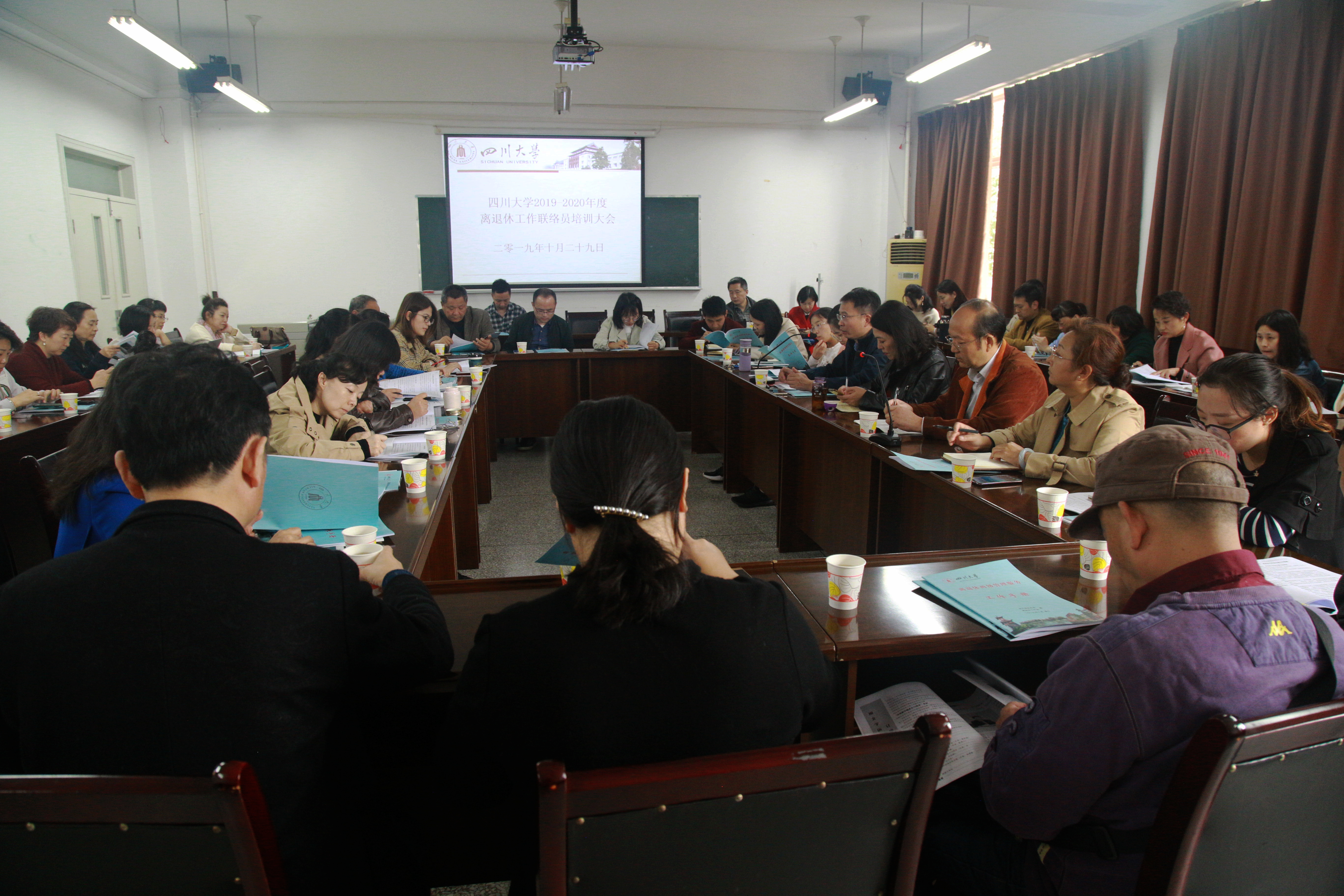 学校科级干部调整完成后,很多二级单位的离退休工作联络员进行了调整,为加强离退休工作联络员队伍建设,不断提高离退休管理服务工作水平,10月29日下午,离退休工作处在文华活动中心309会议室组织召开了2019年全校离退休工作联络员培训会。各学院、机关部处、业务单位的离退休工作联络员和离退休处科级以上干部共70余人参加了培训会。