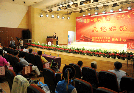 5月15日下午,由四川大学枫叶艺术团和遂宁市阳光艺术团联合主办的迎接中国共产党“十八大”召开文艺汇演在文华活动中心音乐厅隆重举行。四川大学党委副书记、纪委书记徐兰教授,遂宁市人民政府副市长胡家正出席文艺汇演,学校组织部、工会、离退休工作处等有关部门负责人,遂宁市委、市政府有关领导参加了文艺汇演。