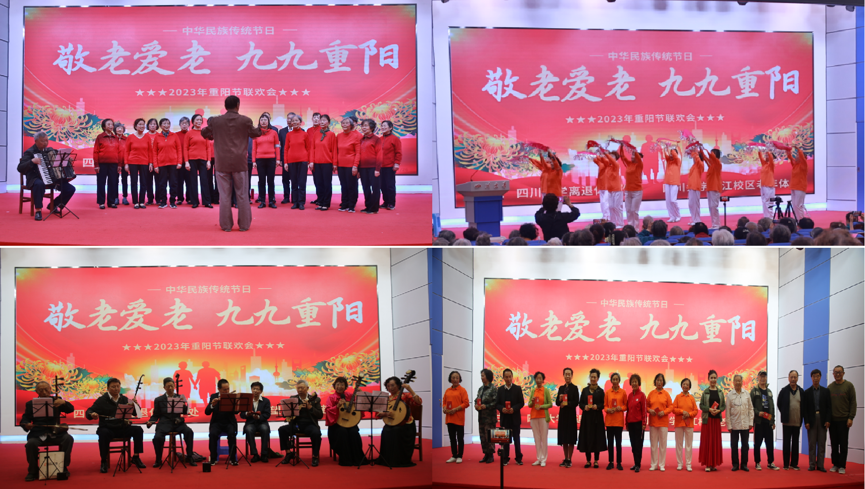在重阳节来临之际,为弘扬中华民族的传统美德,我校老年体协于10月20日下午在汇文楼演播厅举行“敬老爱老 九九重阳”联欢会,离退休工作处副处长朱颖、老年体协班组成员、文体活动表演人员等200余名老同志参加。